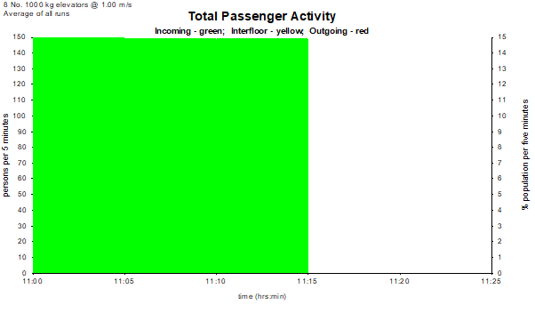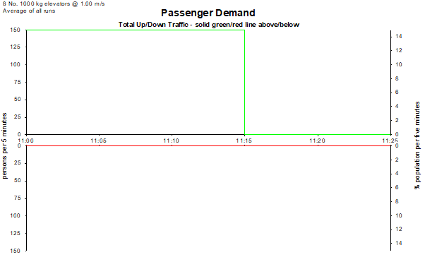 The Demand is entered as a percentage of the building population per 5 minutes. Traffic is divided into three parts: % incoming, % outgoing, and % interfloor.