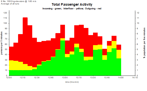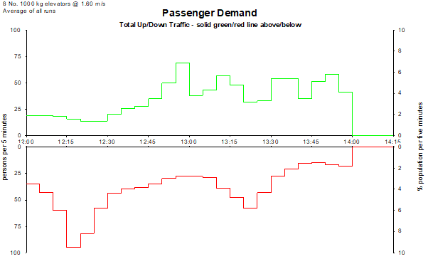 Elevate generates a 2-hour lunchtime traffic profile appropriate to the building population.