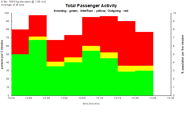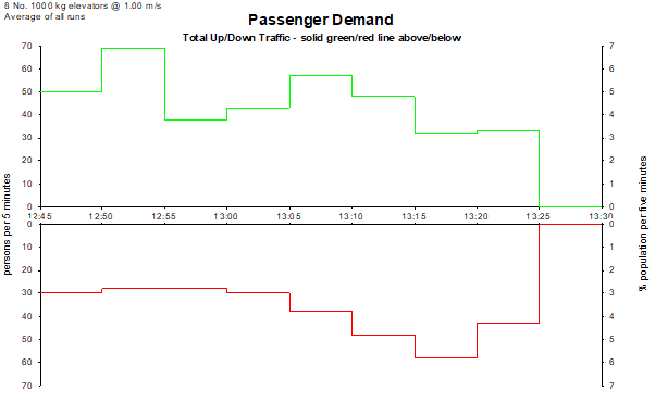 Elevate generates a 40 minute lunchtime traffic profile appropriate to the building population.